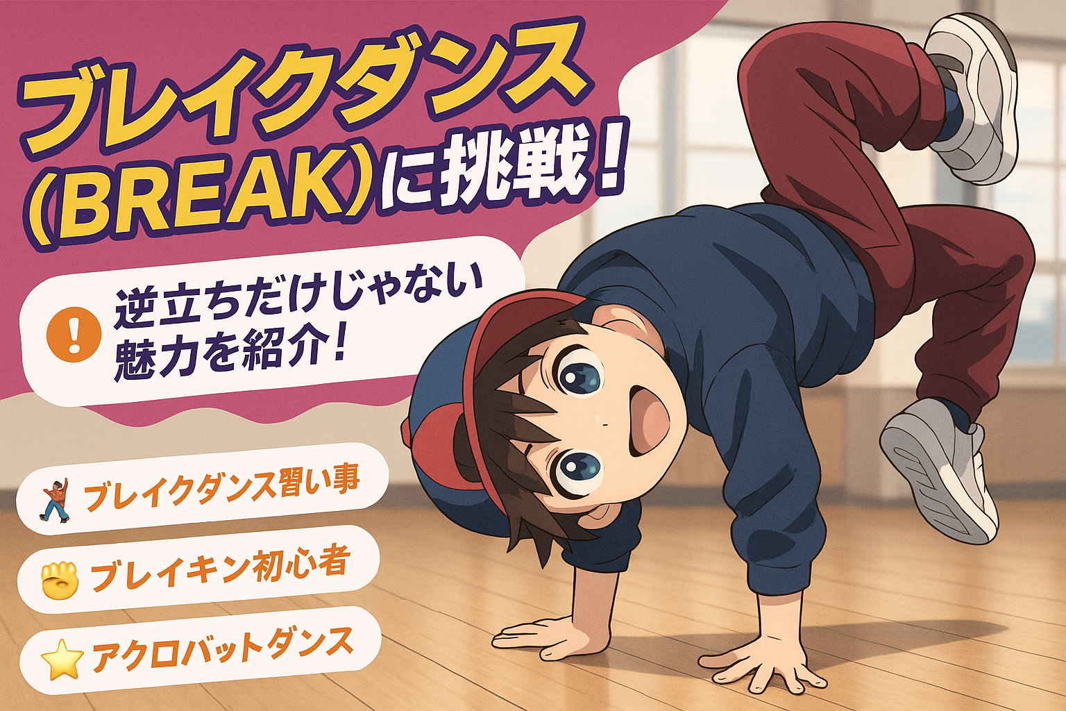 ブレイクダンス、通称“BREAK(ブレイク)”は、アクロバティックな技とリズム感あふれるステップが魅力のストリートダンス🕺💫
