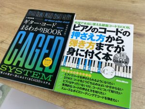 主に楽器関連の本がメインですが、コード関連やバンドスコア、歌詞集などが揃っています✨(Bumpのorbital period,名盤ですよね)
