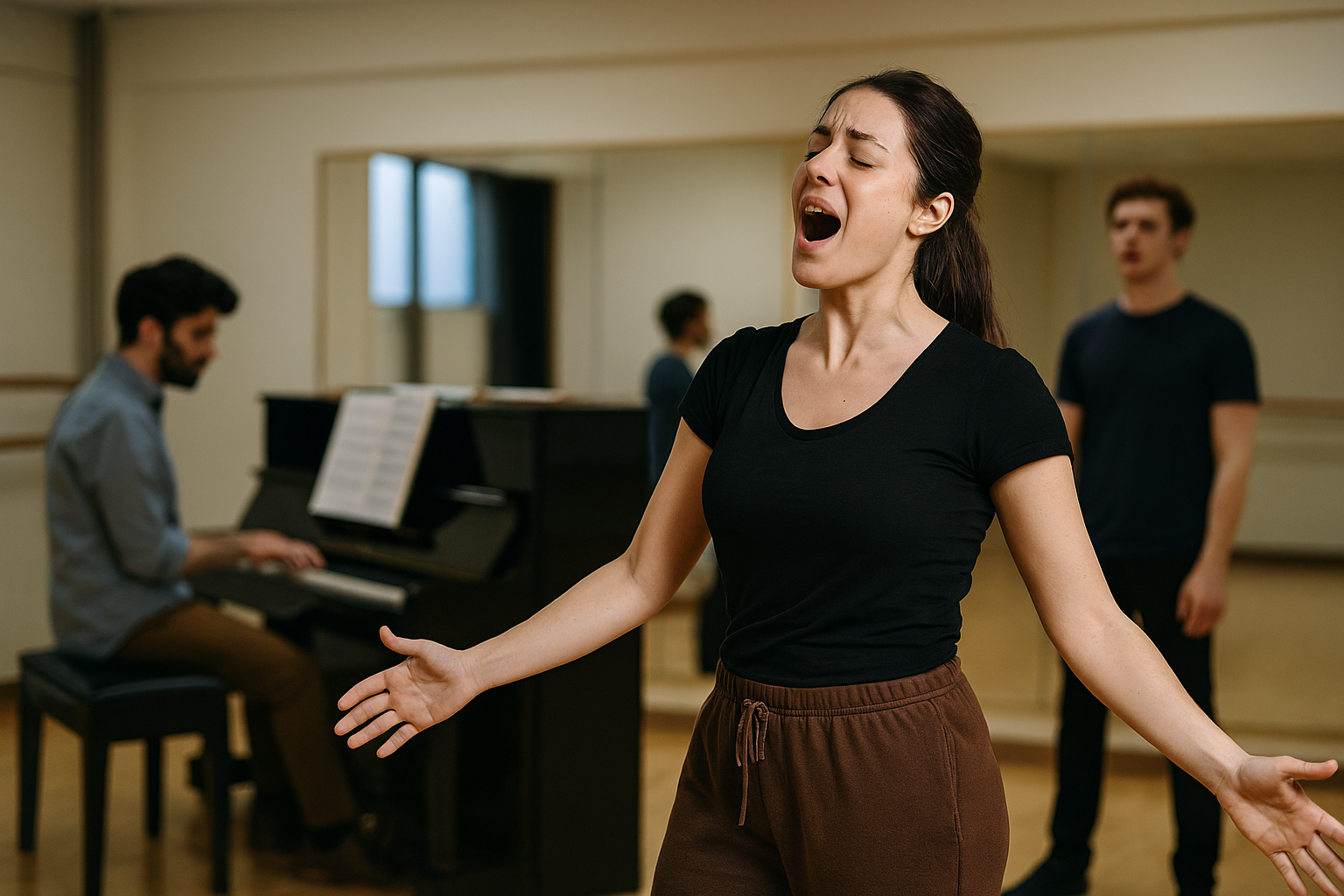 歌だけ上手くてもダメ。動機、感情、身体表現の連動が必要です。テキスト分析→感情の身体化→瞬間反応を鍛えるワークを繰り返しましょう。即興やマイズム(感覚記憶)系のレッスンも効果的です。