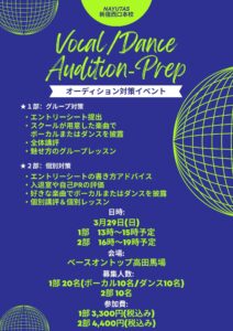 - プロボーカルコース 洋楽・発音矯正コース 舞台・ミュージカルコース K-POPコース