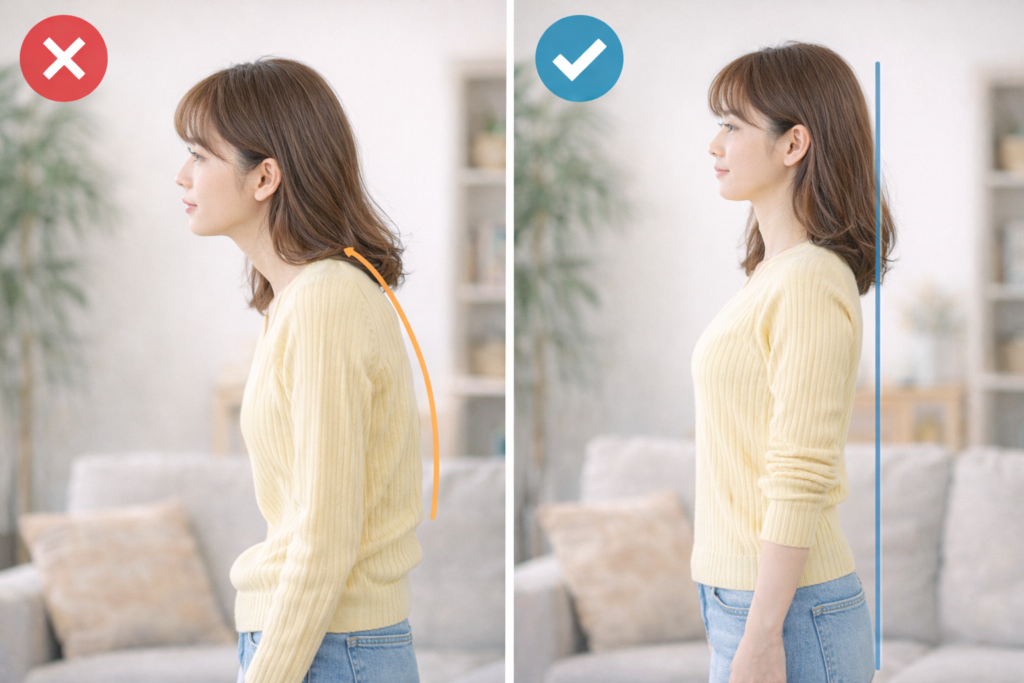 猫背のままでは、息が浅くなり、声も弱くなります。